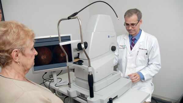 If there are any abnormalities, the dye will usually reveal them by leaking, staining or by its inability to get through blocked blood vessels. Center for Sight’s Medical Retinal Specialist, Robert Kelly, M.D. will look for any abnormalities by identifying areas that exhibit hypo fluorescence (darkness) or hyper fluorescence (brightness). These are descriptive terms that refer to the relative brightness of fluorescence in comparison with a normal retinal angiography study.